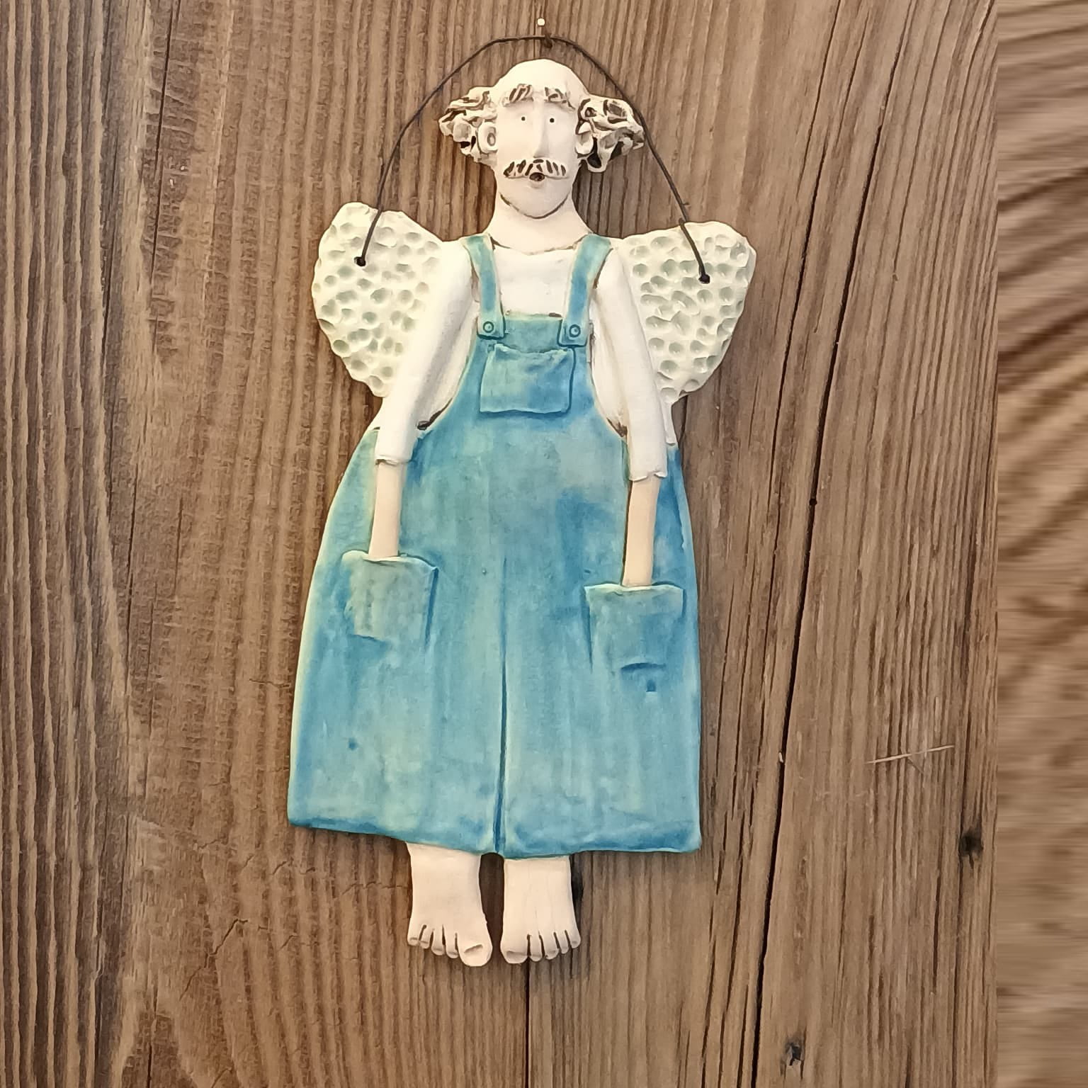 Anioł ceramiczny wiszący mężczyzna z wąsami - wzór 2