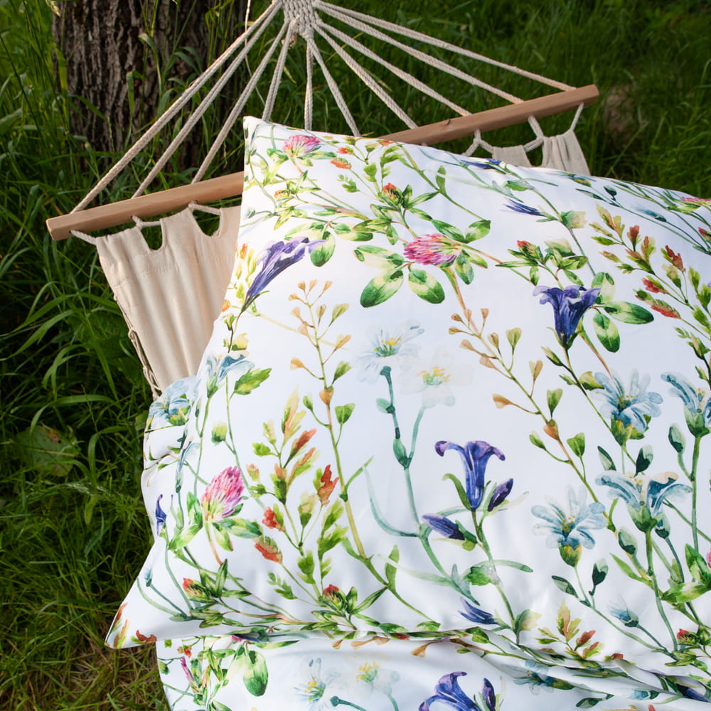 Proponujemy Państwu pościel wykonaną z wysokiej jakości bawełny, o miękkim i przyjemnym dla skóry splocie satynowym. Wzór „KONICZYNA” to piękna, artystyczna grafika akwarelowa, której motywem przewodnim są kwiaty koniczyny i dzwonków, nadające pościeli sielski charakter.