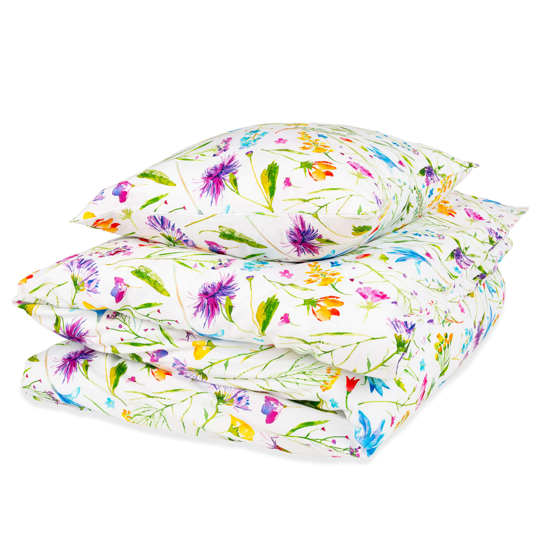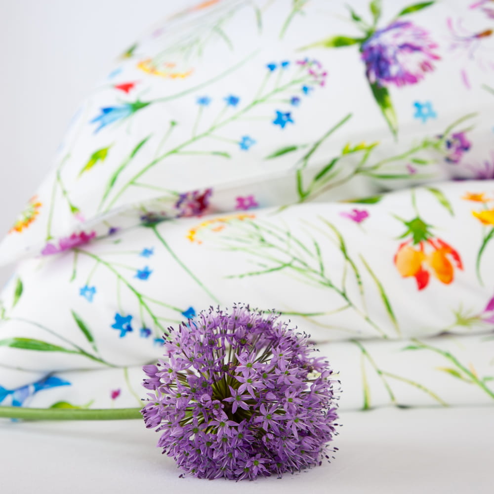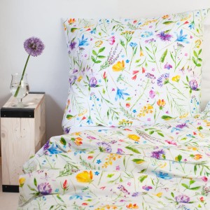 Pościel wykonana z wysokiej jakości bawełny, o miękkim i przyjemnym dla skóry splocie satynowym. Wzór „LETNIA ŁĄKA” to piękna, artystyczna grafika akwarelowa, z radosnym motywem rozsypanych dzikich kwiatów i ziół.