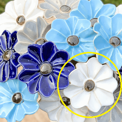 Kwiat ceramiczny biały z ciemnym środkiem