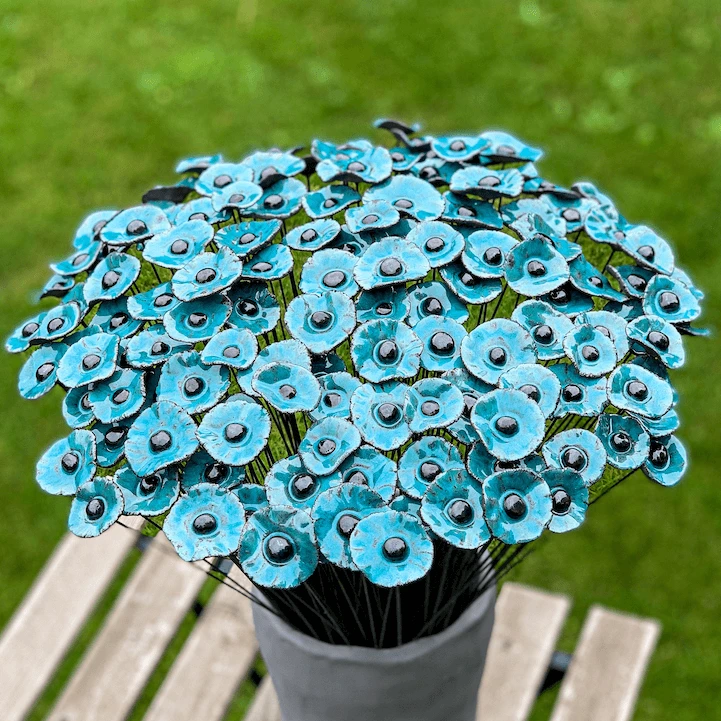 Kwiat ceramiczny mak niebieski mini