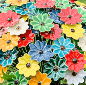 Drobne kwiaty uroczych, ceramicznych margaretek w 12 wersjach kolorystycznych.