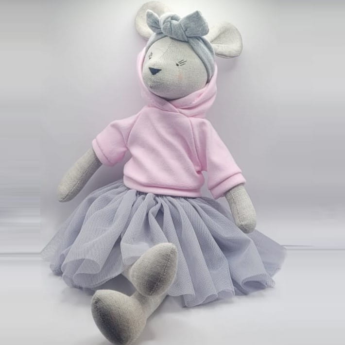 Urocza laleczka wykonana ręcznie z niezwykłą starannością i z użyciem wysokiej jakości tkaniny lnianej. Elementami stroju są tiulowa spódniczka, elastyczna opaska wiązana na głowie i precyzyjnie wykonana, bawełniana bluza z kapturem lub bez (szczegóły widoczne na zdjęciu). Wszystkie ubranka są zdejmowalne. Laleczka mierzy około 40 cm wysokości. Pakowana w eleganckie, karbowane pudełko papierowe z okienkiem. Idealnie nadaje się na prezent.