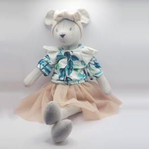 Urocza laleczka wykonana ręcznie z niezwykłą starannością i z użyciem wysokiej jakości tkaniny lnianej. Elementami stroju są tiulowa spódniczka, elastyczna opaska wiązana na głowie i precyzyjnie wykonana, bawełniana bluza z kapturem lub bez (szczegóły widoczne na zdjęciu). Wszystkie ubranka są zdejmowalne. Laleczka mierzy około 40 cm wysokości. Pakowana w eleganckie, karbowane pudełko papierowe z okienkiem. Idealnie nadaje się na prezent.